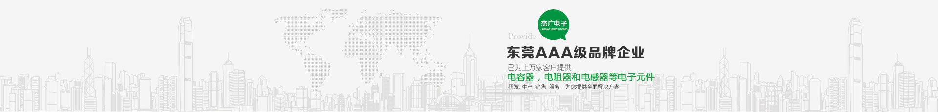 東莞市杰廣電子有限公司是一電子元件之專業(yè)制造廠 ,銷售遍及世界各地,主要產(chǎn)品包括:電容器,電阻器和電感器等電子元件,以供應(yīng)汽車,通訊,電腦,音響,影像,電動工具,儀表,以及軍用電子等工業(yè)之電子元件使用。